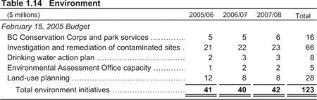 The September Update includes an infrastructure plan to meet the needs of a growing economy and demands for new and upgraded health care and educational facilities. Total infrastructure spending for ministries and taxpayer-supported agencies is higher than the February 15 budget, and funds an additional $243 million in 2005/06, $430 million in 2006/07 and $371 million in 2007/08. This mainly reflects needed infrastructure in the colleges and universities and for health care facilities. More information on the capital spending forecast is found on page 37.