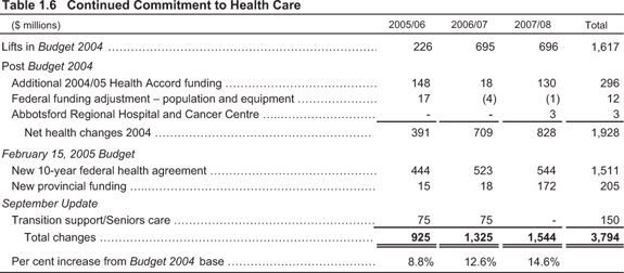 The September Update reconfirms the investment of growing provincial revenues in British Columbia's funding priorities for health care. Over three years, health care will receive the largest share of funding increases.